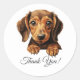 Ce charmant autocollant de Merci Dachshund est parfait pour les amoureux de les chiens qui apprécient la nature unique et amusante de cette race. Ajoutez une touche personnelle et ludique à toute carte de remerciement ou cadeau.