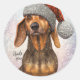 Sticker Rond Dachshund, Chien Père Noël, Personnaliser, Noël