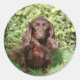 Sticker Rond Dachshund miniature Brown aux cheveux longs