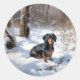 Sticker Rond Dachshund Qu'Il Neige Noël