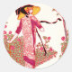 Sticker Rond Dame Art déco branchée dans un jardin Rose