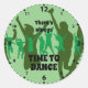 Sticker rond TIME TO DANSE élégant et coloré, montrant des graphiques de silhouettes dansantes. Le jeu de couleurs est vert menthe, vert forêt, vert émeraude. Lit le texte IL EST TOUJOURS LE TEMPS DE DANSER dans la typographie noire. Le texte est PERSONNALISABLE, vous pouvez donc le remplacer par du texte ou un nom de longueur similaire. Disponible en d'autres couleurs.