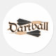 Des fléchettes de dartball en plumes noires entourent "Dartball".