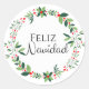 L'autocollant rond Feliz Navidad qui comprend une couronne rouge et verte de Noël autour de l'expression "Feliz Navidad". Joyeux Noël en autocollant espagnol. Idéal pour les cadeaux de Noël. Festive Feliz Navidad collants ronds pour les amis et les familles.
