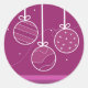 Jolies décorations de Noël pourpres accrochées à des rubans sur un arrière - plan violet.