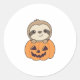 Le paresseux est assis dans un citrouille. Les fentes dans un fantôme citrouille sont de mignons animaux pour Halloween. Citrouilles en orange avec des animaux amusants pour les enfants.