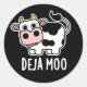 Sticker Rond Deja Moo Funny Cow Pun Dark BG