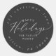 Ces délicats stickers d'adresse de retour circulaire de vacances au charbon sont parfaits pour une carte de vacances moderne ou une enveloppe d'invitation. Le design minimaliste romantique présente une typographie chic et élégante sur un arrière - plan gris foncé avec un look propre et simple.
