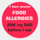 Rappelez les amis, la famille et les étrangers amicaux de vérifier avec VOUS avant d'alimenter votre enfant avec des allergies alimentaires. Puisqu'il y a les dérivés cachés multiples, les problèmes avec des allergies multiples, et les questions de contamination croisée cet autocollant lit simplement des "allergies alimentaires". Protégez votre petit avec cet avertissement brillamment coloré !