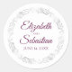 Ces élégants autocollants de mariage sont dotés d'un élégant texte de style cassis violet, magenta ou mûrier sur un arrière - plan blanc avec une bordure florale en faux feuille argent en dentelle. Le texte est entièrement personnalisable et contient les noms du couple mariage et la date du mariage. Super comme des étiquettes de faveur ou des scellés d'enveloppe!