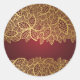 Sticker Rond Dentelle en feuille d'or sur arrière - plan rouge