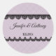 Sticker Rond Dentelle noire sur Lavande douce Mariage personnal