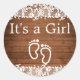 Sticker Rond Dentelle Rustique & Blanc C'EST UNE FILLE