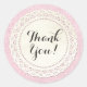 Sticker Rond Dentelle rustique sur le Merci rose Shabby