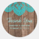 Sticker Rond Dentelle Turquoise rustique et Merci Mariage bois