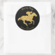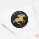 Les autocollants ronds présentent un faux cheval de parties scintillant en or et du jockey sur n'importe quel arrière - plan couleur - nous montrons noir. Une façon amusante d'habiller vos faveurs de fête, décoration de fête, table, invitations et plus encore. Utilisez pour une soirée Derby, une soirée Derby, une fête de douche nuptiale, une fête d'anniversaire ou toute occasion. CORRESPONDANCE d'objets dans notre collection.