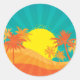 Sticker Rond Design de surf tropical rétro de Sunset Beach