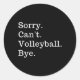 Sticker Rond Désolé De Ne Pas Pouvoir Volleyball Bye