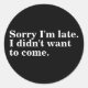 Sticker Rond Désolé d'être en retard. Je ne voulais pas venir.