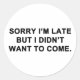 Sticker Rond Désolé d'être en retard mais je ne voulais pas ven