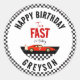 Sticker Rond Deux Fast Race Car Boy 2e fête d'anniversaire