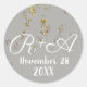 Vos propres initiales et date spéciale sur un arrière - plan gris avec confetti en chute... une belle idée d'autocollant mariage