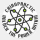 Cette conception comporte un atome avec un texte qui dit CHIROPRATIQUE : DÉVERROUILLEZ LA PUISSANCE À L'INTÉRIEUR.