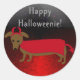 Bonne Halloweenie ! Whimsical Dachshund habillé comme un diable pour Stickers Halloween