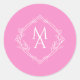 Sticker Rond Diamant Floral Monogramme Mariage rose