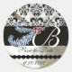 STICKER ROND DIAMOND FEATHERS BLACK SILK DAMASK MONOGRAM