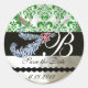 STICKER ROND DIAMOND FEATHERS WHTE GREEN SILK DAMASK MONOGRAM