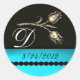 STICKER ROND DIAMOND TULIPS NOIR AQUA BLANC BLEU TURQUOISE MONO