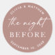 Ajoutez une touche chaleureuse et romantique à votre dîner de répétition avec cet autocollant rond mauve avec l'expression "La nuit avant". L'arrière - plan doux le rend parfait pour les mariages de automne, surtout lorsqu'il est associé à des tons saisonniers riches comme la rouille, la terre cuite ou la sauge. Que vous planifiez une fête d’automne boho, rustique ou moderne, cet autocollant est idéal pour sceller des enveloppes, décorer des sacs de faveur ou personnaliser des cadeaux pour votre événement pré-mariage.