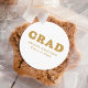 Autocollants de graduation personnalisés avec "Grad" en gras doré rétro avec un arrière - plan blanc (couleur modifiable). Personnalisez les autocollants blancs et or en ajoutant le nom et l'année de graduation du diplômé. Les autocollants de graduation personnalisés sont parfaits pour sceller les enveloppes, les sacs de finition, etc.