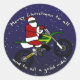 Joyeux Noël à tous - et à tous un bon voyage! Caricature amusante du Père Noël à vélo sur une moto de terre dans le ciel enneigé. Idéal pour tous les motocyclistes et motocrossers.