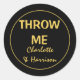 Un autocollant moderne amusant en noir et or avec le texte "Throw Me" idée pour do-it-yourself sacs confetti et facile à customiser avec un nom