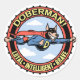 Logo du super héros du dessin animé "Doberman !", avec Doberman volant et "Doberman - Loyal, Intelligent, Brave" dans un emblème rond. Amusant, drôle, t-shirts, cartes, cadeaux.