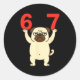 Sticker Rond Dog Pug Funny 67 Meme Six Seven