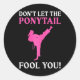 Sticker Rond Don't Let The Ponytail Fool You Karate Fighter Mar