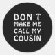 Sticker Rond Don't Make Me Call My Cousin Funny Cousins Crew Si