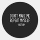 Sticker Rond Don't Make Me Repeat Myself -history, Funny, Sarca