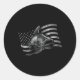 Design unique avec drapeau américain intégré dans une illustration frappante de pêche au doré jaune, mettant en valeur l'esprit patriotique et la passion pour la pêche à la ligne.