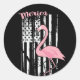 Sticker Rond Drapeau blanc américain Flamant rose rose