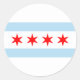 Design basé sur le drapeau de Chicago avec des rayures blanches, bleu clair et étoiles rouges.