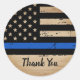 Sticker Rond Drapeau de la ligne bleue mince rustique Merci de