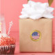 Le drapeau des États-Unis est entré dans un faux anneau d'or arrondi. Les mots "États-Unis" se trouvent en haut et en bas de la conception et ont un effet pressé. La paire de trois étoiles décoratives les unes en face des autres, est également conçue avec un effet pressé.