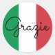 Grazie ... une langue italienne merci message contre les couleurs du drapeau italien. Vous pouvez modifier le style moderne monoline whimsical calligraphy pour créer votre propre message texte personnalisé. Essayez un style de police, une taille et une couleur différentes et personnalisez la conception du texte pour créer vos propres autocollants de typographie.