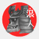 Ronin, un samouraï sans maître. Un crâne peint en cachemire, portant une coiffure de samouraï. Un cercle rouge dans l'arrière - plan crée le drapeau du Japon.