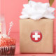 Un autocollant avec le drapeau suisse - croix blanche sur arrière - plan rouge.