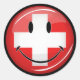 Montrez votre fierté nationale pour le magnifique pays montagneux de Suède avec ce drapeau suisse rond brillant et souriant.